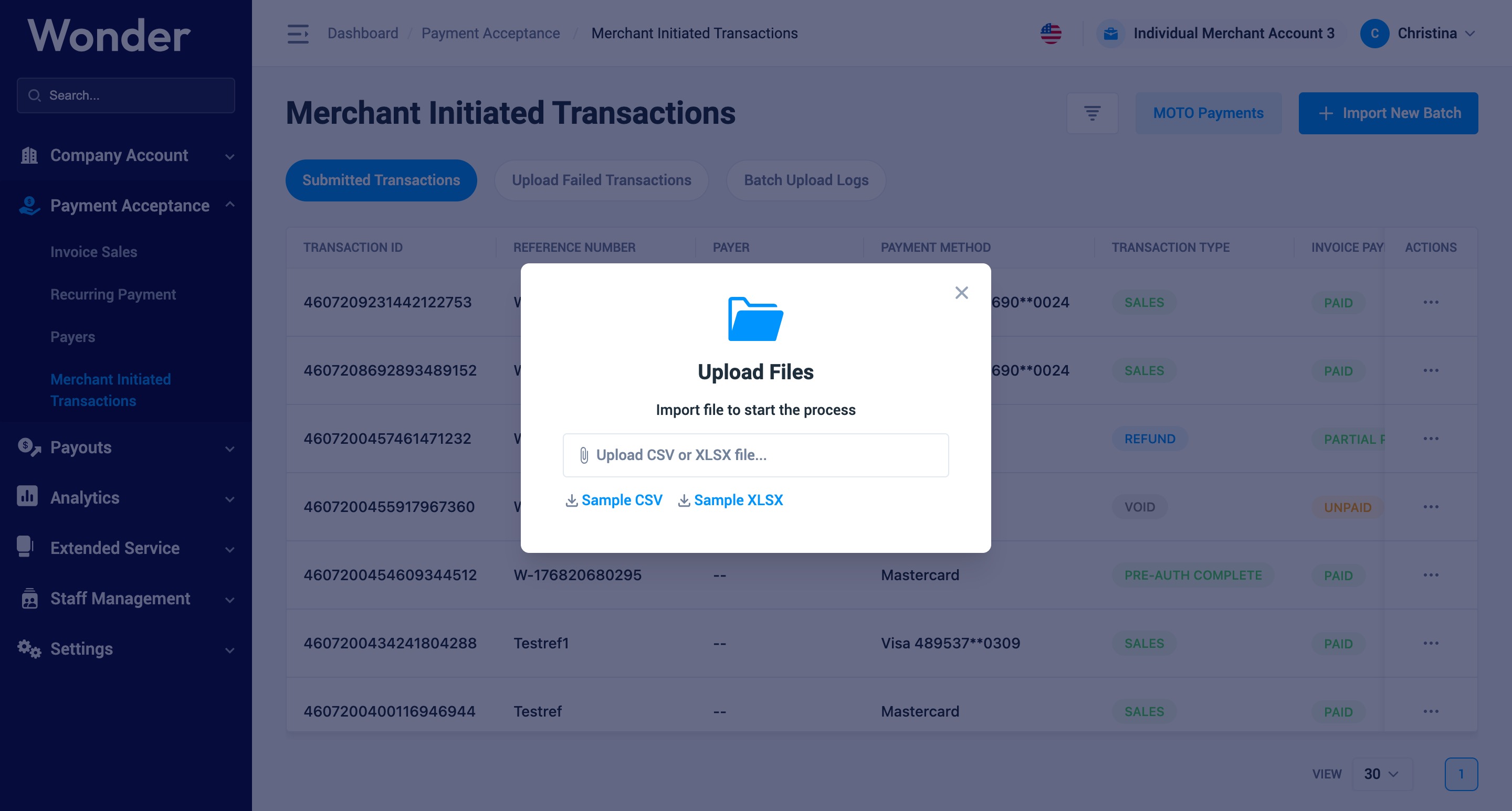 Wonder Dashboard 的「商家發起交易模組」讓您能透過商家帳戶批次或手動執行取消交易、退款及預授權扣款操作。如需啟用此功能或了解更多詳情,請聯繫 support@wonder.app。